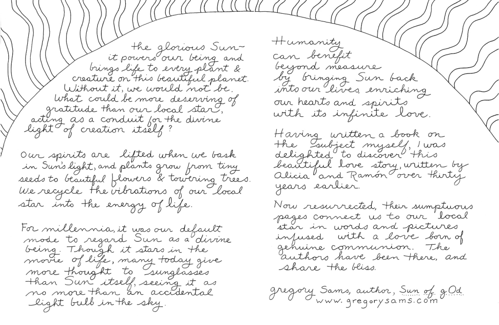 “Being of the Sun” was written 25 years before Sun of gOd. This beautiful book by Alicia Bay Laurel and Ramon Sender taps into the same spirit. Inspirational! All lovingly hand-written and illustrated.