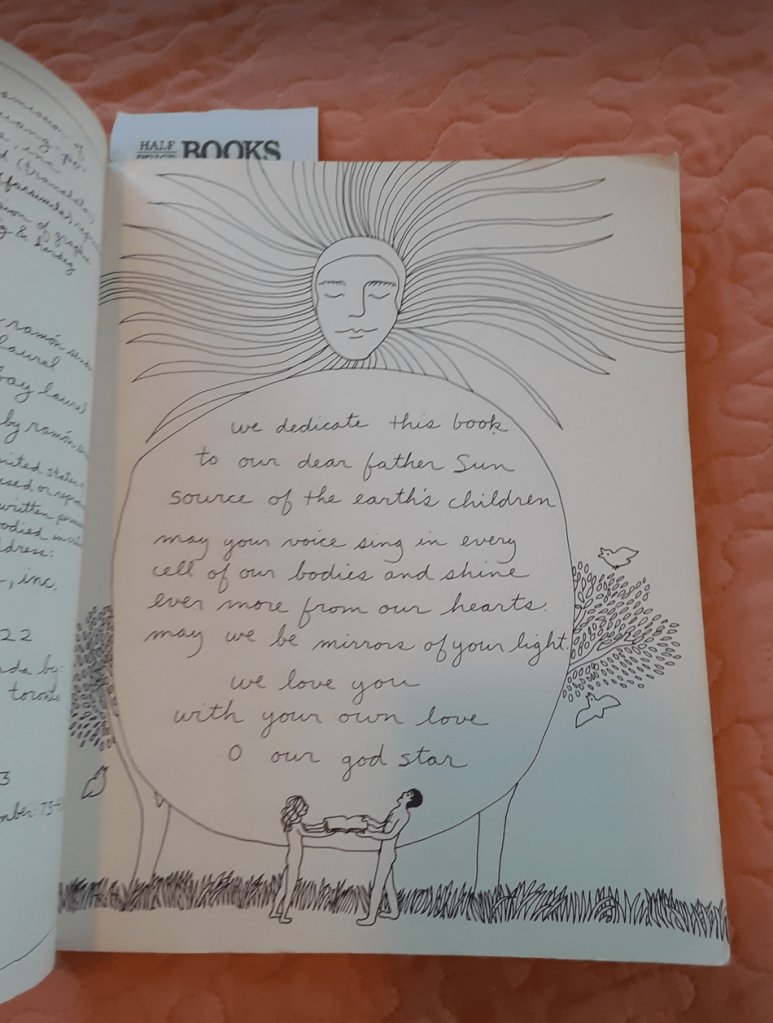 Then this morning I stumbled upon a vendor with retro books. The first one I was drawn to was your book Being of the Sun. I hope that you feel, as much as I do, how your time capsule found the right place at exactly the right time.