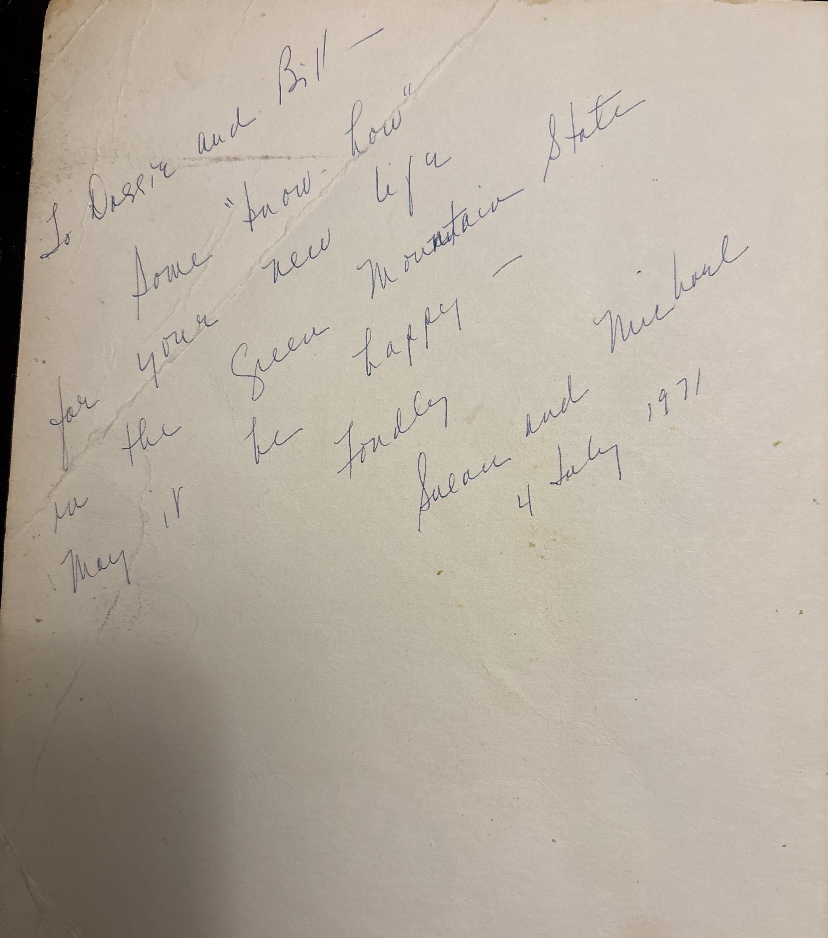 My story: in 1971, Dossie Sullivan and her husband Bill bought a small cabin in the woods in Southern Vermont. To congratulate them on this next chapter in their life, a friend gifted them a copy of your book, Living on the Earth.