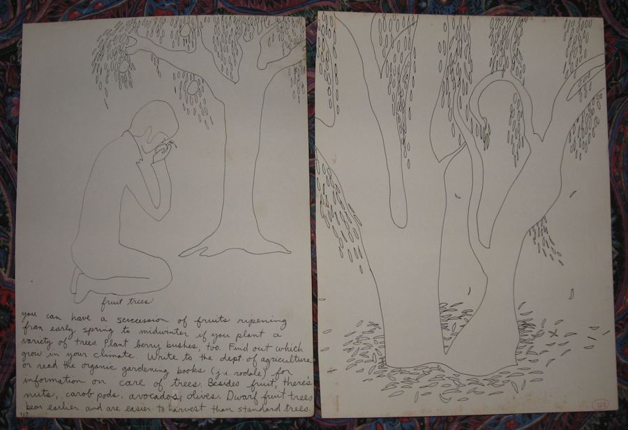 I don’t know what we were all on, but for some strange reason the artwork of those days took on that innocent quality in psychedelic colors, that back-to-the-land essential information exchange, that transcendent mystical call from the Beyond. You were one of the ones to be focused enough to actually get it all down in pages consecutively numbered starting with ONE, and, amazingly enough, get it published! Their weren’t many books on how to live on the earth in that primal way that we were all longing towards, but yours sat on just about every old kitchen table in every old recycled hippy farmhouse and communal bookshelf that I happened upon.