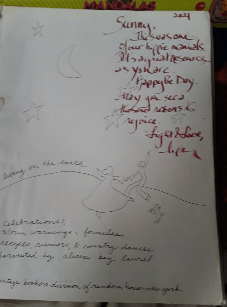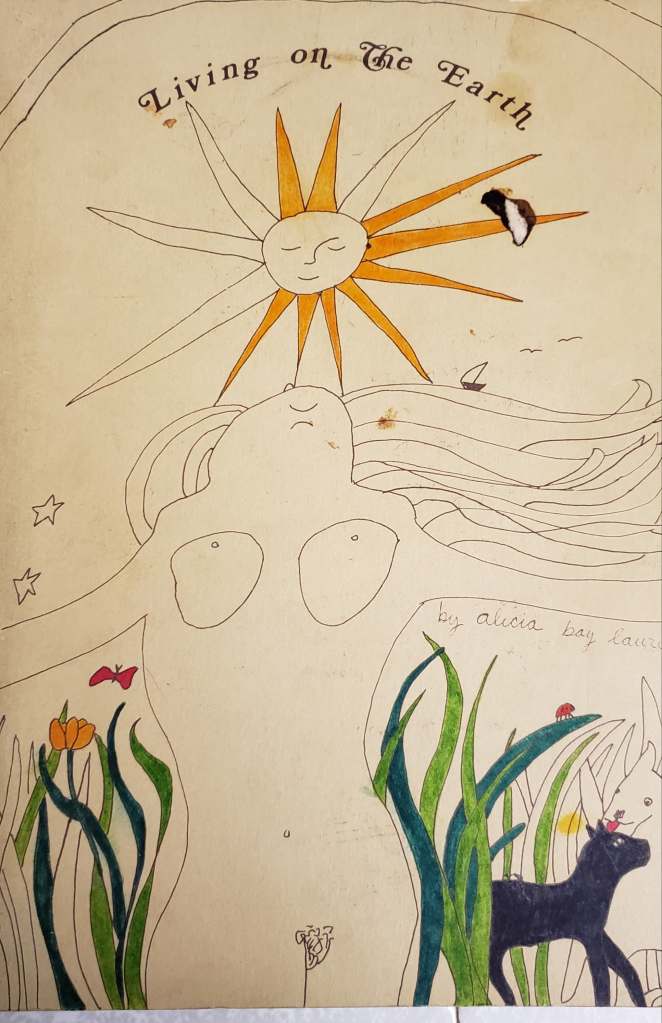 Your book was so popular when I was in high school, Alicia (dating myself here), with us young wannabe hippies. It so captured the vibe of the post-60s era. I was enchanted by Living on the Earth, and it influenced me as a young writer and illustrator.