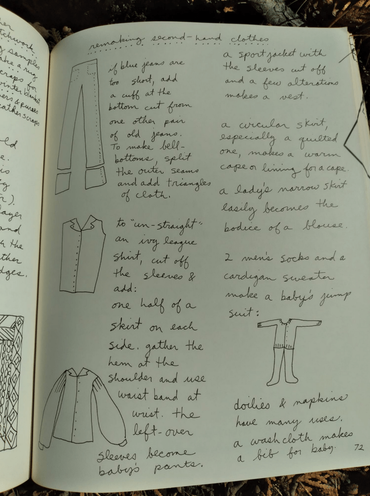 I vividly remember using a pattern to hand sew a long skirt from the instructions in that book. By the woodstove and kerosene light! Certainly not in my background at all, but those years shaped and helped to form my values. I’m so grateful for you